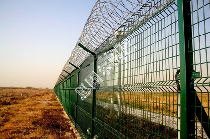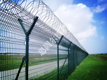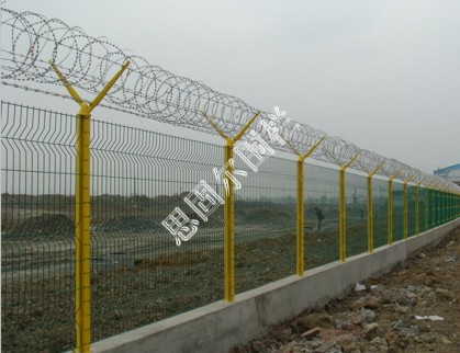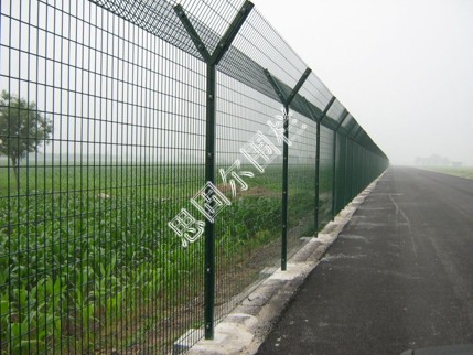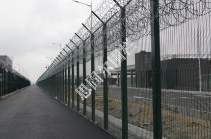 飛機場圍欄又稱作Y型安全防御護網”,是由V型支架立柱,加強型焊接片網,安全防盜連接件和熱鍍鋅刀片刺籠組成強度和安全防御性級別很高。近年來,被廣泛應用在機場,軍事基地等高安全場所。